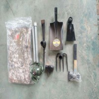 防汛组合工具包砍刀件套:含(镐、钯、锄头、十磅锤、砍刀、方铲、电筒、警用分体雨衣、毛巾、水壶、头盔)组合工具十字镐、钉耙、锄头、砍刀、方铲、十镑锤可以共用一条活动柄,有效快速实用,一柄多用。该组合轻便、工具配备齐全适用于救援队员适用。
